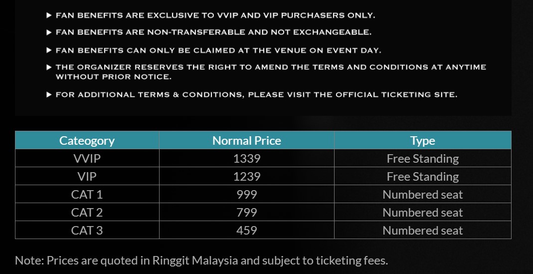 如需更多关于票价详情与座位图,可上主办方官网:www.starplanet.com.my 查询最新公告。