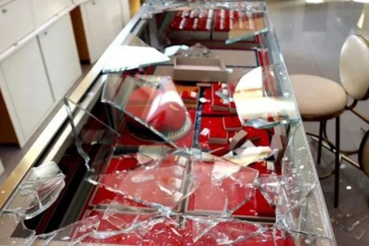 案件发生在迪庆州香格里拉市一间黄金首饰店。店员清晨到店准备营业时,发现原本前一晚已关紧的卷闸被拉起,情况明显异常。进入店内查看后,更发现多个玻璃展示柜遭砸毁,柜内黄金饰品大量消失,地面散落碎玻璃与杂物,现场一片凌乱。店员意识到可能发生盗窃后立即报警,警方随后赶到现场展开调查与取证。